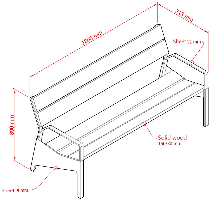 +40729.059.115Panchina da parco con poggiaschiena, Modello 05